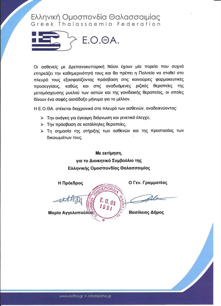 Πανελλήνια Ενημερωτική Εκδήλωση για την Θαλασσαιμια…